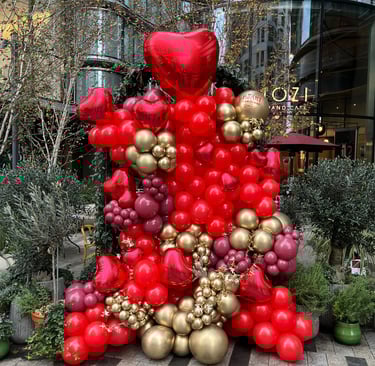For the Project HeArt launch, we were inspired by the project’s central themes of connection, heart, and community. To reflect this, we designed and installed a tailored organic balloon sculpture, featuring a rich palette of reds, burgundy, and gold, with heart-shaped balloon details woven throughout the installation. The piece was crowned with a large heart balloon, symbolising love and unity.
